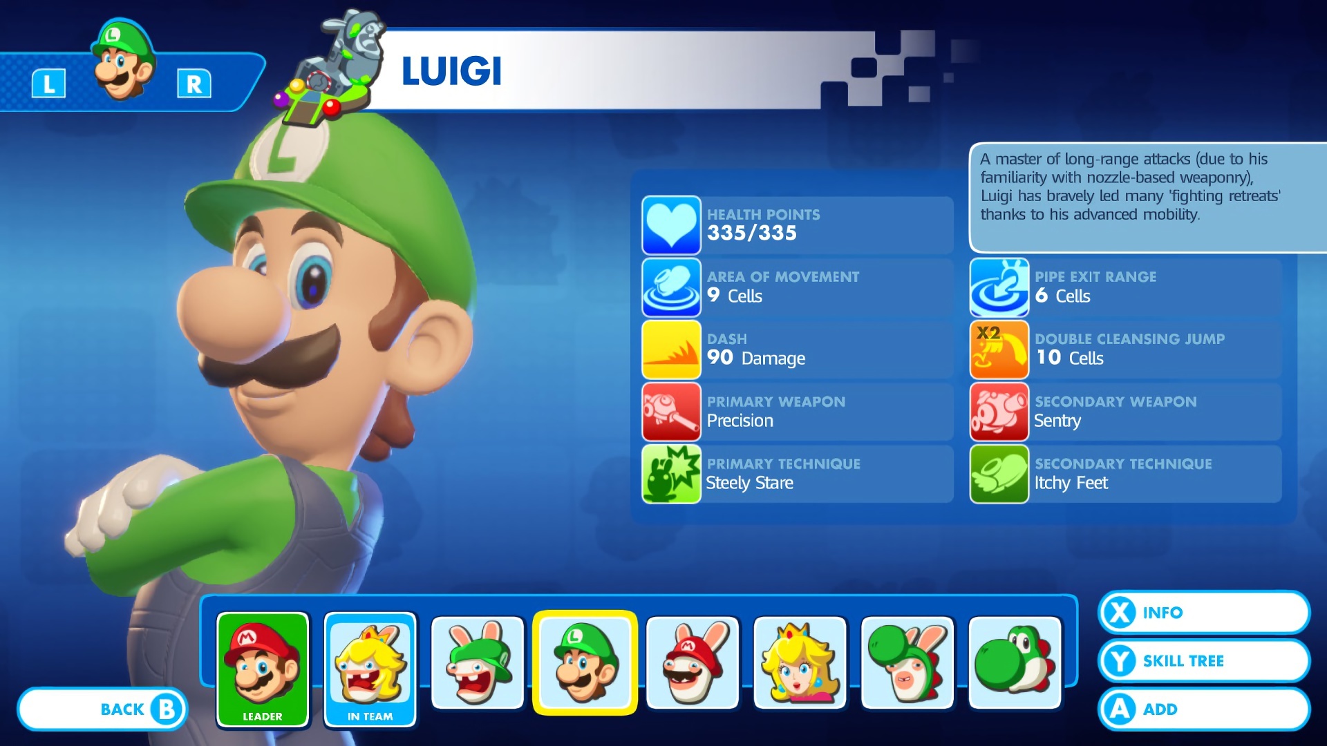 Mario Rabbids Kingdom Battle characters selection.
