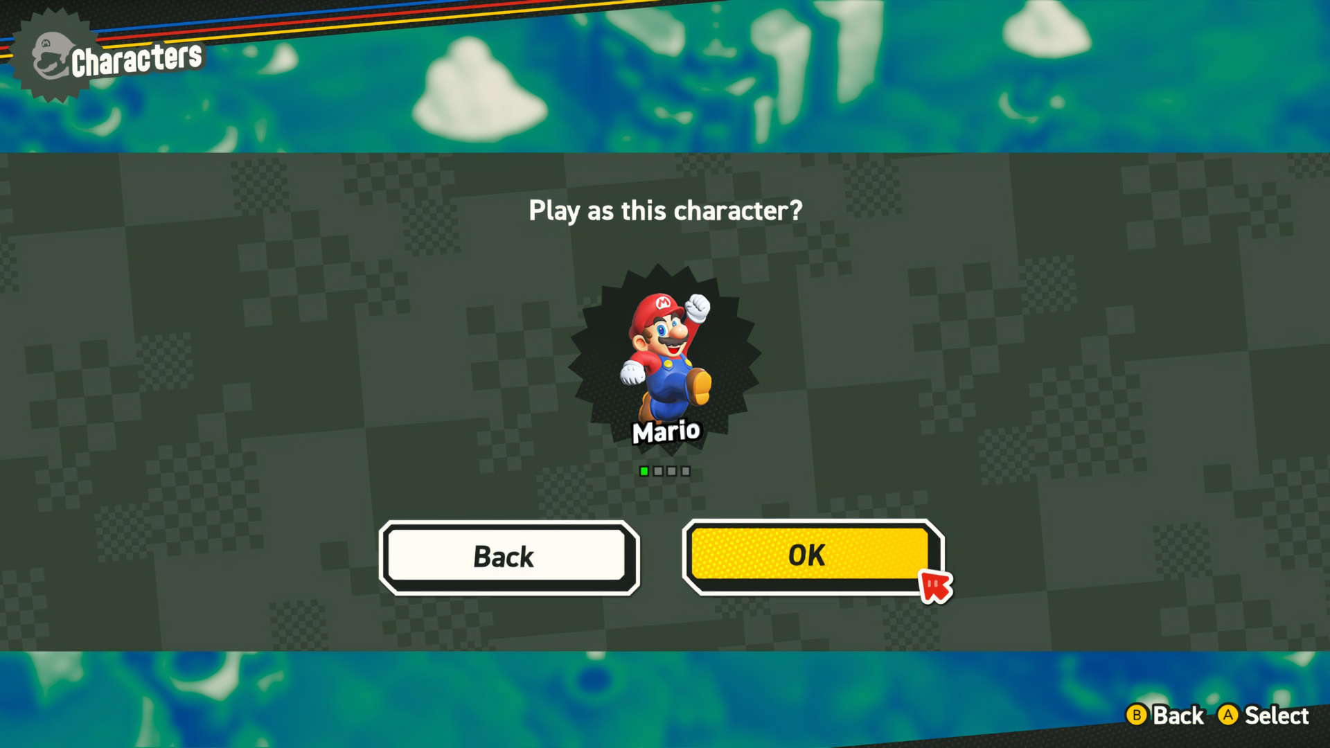 Super Mario Bros Wonder confirmation dialog.